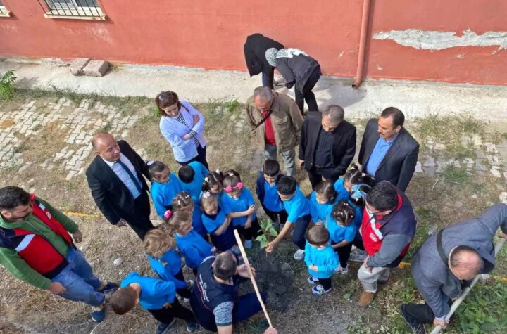 Kütahya'nın Emet ilçesinde düzenlenen 'Meyve veren fidanlar, memnun çocuklar' aktifliği ile öğrencilere tarım eğitimi...