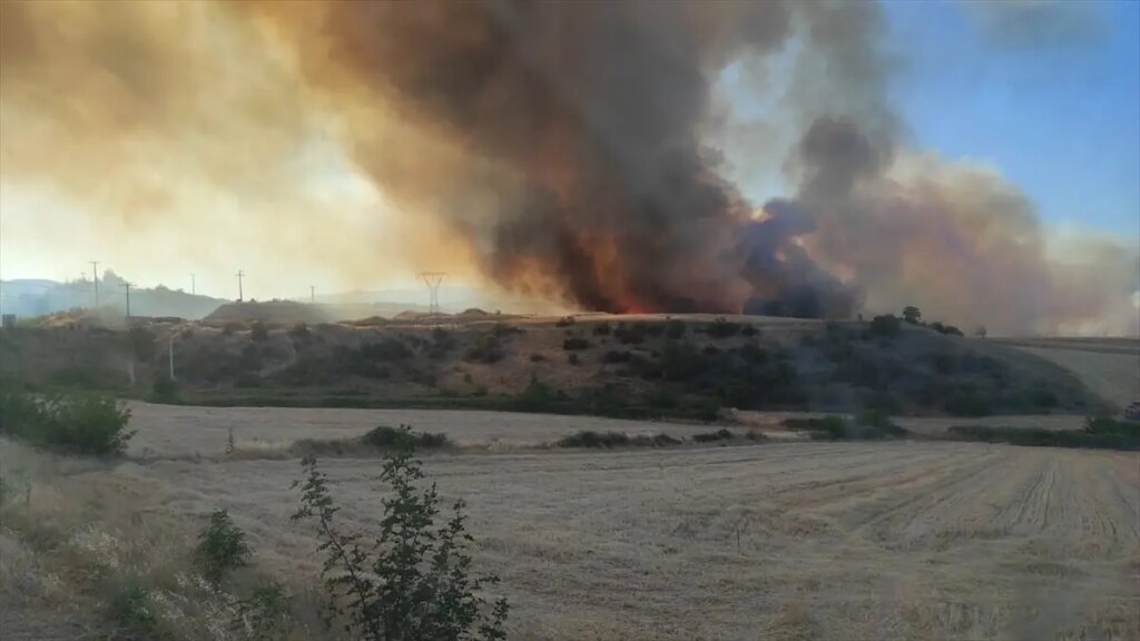 Ekipler, 4 helikopter, 9 arazöz, 3 dozer, 5 su tankeriyle yangını söndürmeye çalışıyor.