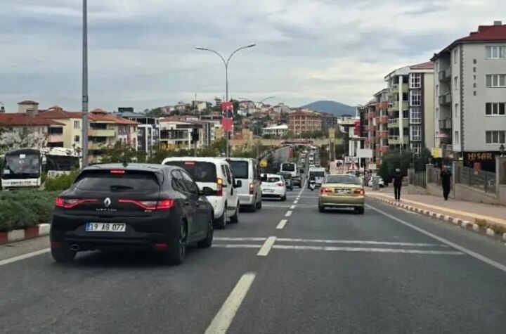 Bilecik'te okulların açıldığı birinci gün, Hamsu Köprüsü'nün yenileme çalışmaları nedeniyle oluşan trafik kuyrukları şoförleri...
