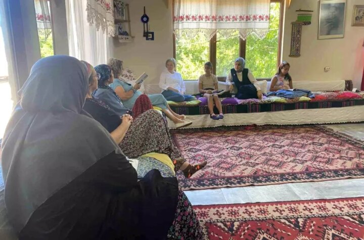 Bilecik'in Gölpazarı İlçe Kaymakamı Feyza Parıltı Kılıç, köydeki bayanlarla bir ortaya gelerek kitap okuma...