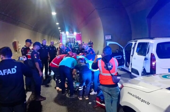Bilecik-İstanbul karayolu üzerindeki Osmangazi Tüneli'nde yapılan acil durum tatbikatı, senaryo gereği meydana gelen kaza...