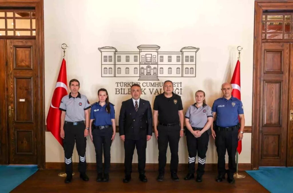 Bilecik Valisi Faik Oktay Sözer, 26-30 Haziran tarihleri ortasında kutlanan Özel Güvenlik Haftası münasebetiyle, Vilayet Emniyet Müdürü Hakan Yılmaz ve beraberindeki özel güvenlik görevlilerini makamında kabul etti. Ziyarette, özel güvenlik hizmetlerinin ehemmiyeti ve bu alanda misyon yapan çalışanın üstlendiği sorumluluklar üzerine değerlendirmelerde bulunuldu. Vali Sözer, kamu güvenliğinin sağlanmasında emniyet teşkilatına takviye sunan özel güvenlik vazifelilerinin, fedakarca yürüttükleri hizmetlerin takdire şayan olduğunu belirtti.
